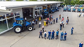 Eine Premiere hat es diese Woche beim Agratec Landtechnikzentrum in Salching gegeben: Der erste in Serie produzierte T6.180 Biomethangastraktor von New Holland wurde dort diese Woche unter großem Publikumsinteresse vorgeführt.