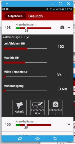 Um die Meldung eines Tieres auf der Liste 10 nicht erst bei den morgen- und abendlichen Kontrollen zu sehen, gibt es im T4C InHerd – Today diese Liste jetzt auch auf dem Handy. Ein kurzer Blick auf das Smartphone genügt, um festzustellen, ob es aktuell ein Tier mit Aufmerksamkeitsbedarf in meiner Herde gibt. So beschränkt sich das Erkennen von Gesundheitsproblemen nicht mehr auf die Stallzeiten des Landwirts, denn die Kühe mit AMS haben schon lange keine Stallzeiten mehr.