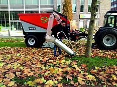 Hydraulische Absenkung/Anhebung des Kehrkopfes, sowie hydraulische Hochentleerung des Behälters auf 2,15m runden das Gesamtpaket eindrucksvoll ab. Die 850mm starke Turbine bringt dabei satte 325 m³/min an Saugleistung.