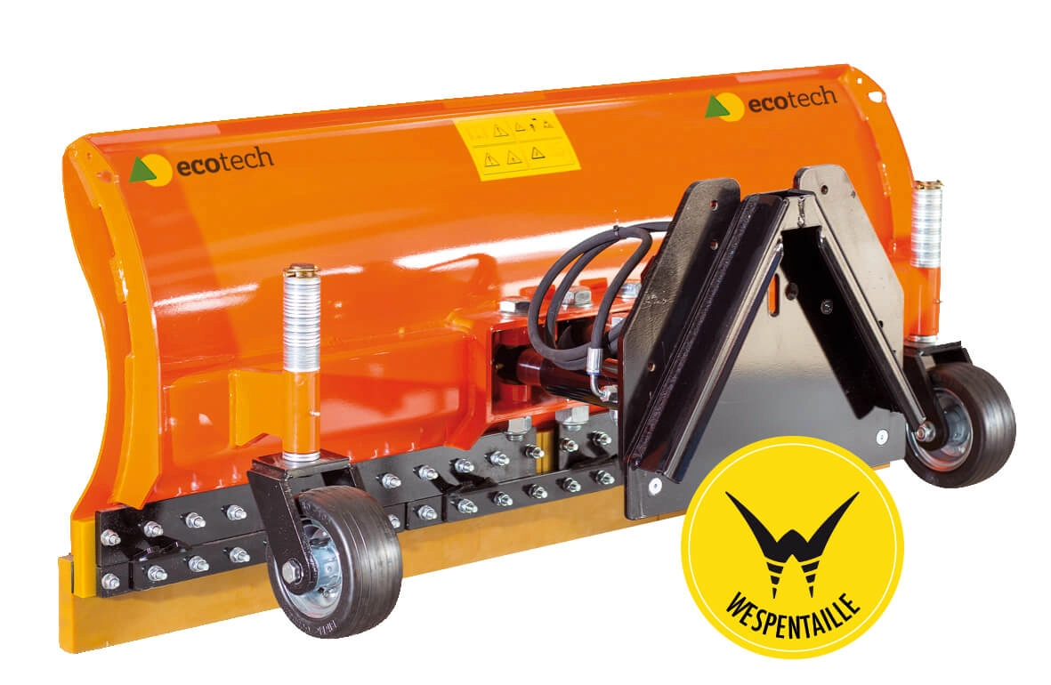 CAD-entwickelte Pflugform für geringsten Räum-Widerstand, Wespentaille für randnahes Räumen entlang von Wänden, Randsteinen und Hindernissen, Schürfleisten geschraubt, wahlweise aus Stahl oder Vulkolan-Hartgummi, stufenlos höhenverstellbare Gleitpilze, 2 groß dimensionierte Hydraulikzylinder für exakte Justierung, horizontaler Niveauausgleich für optimale Bodenanpassung, automatische Federrückstellung sorgt für eine gerade Pflugstellung auch im ausgehobenen Zustand (ideal für einfaches Befahren auf Gehwegen), Ausweichmechanismus mit Federklappensystem