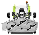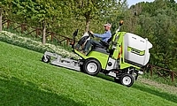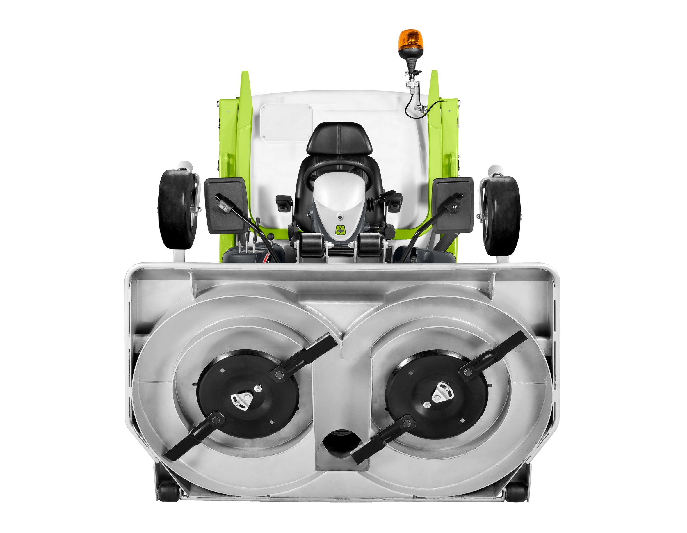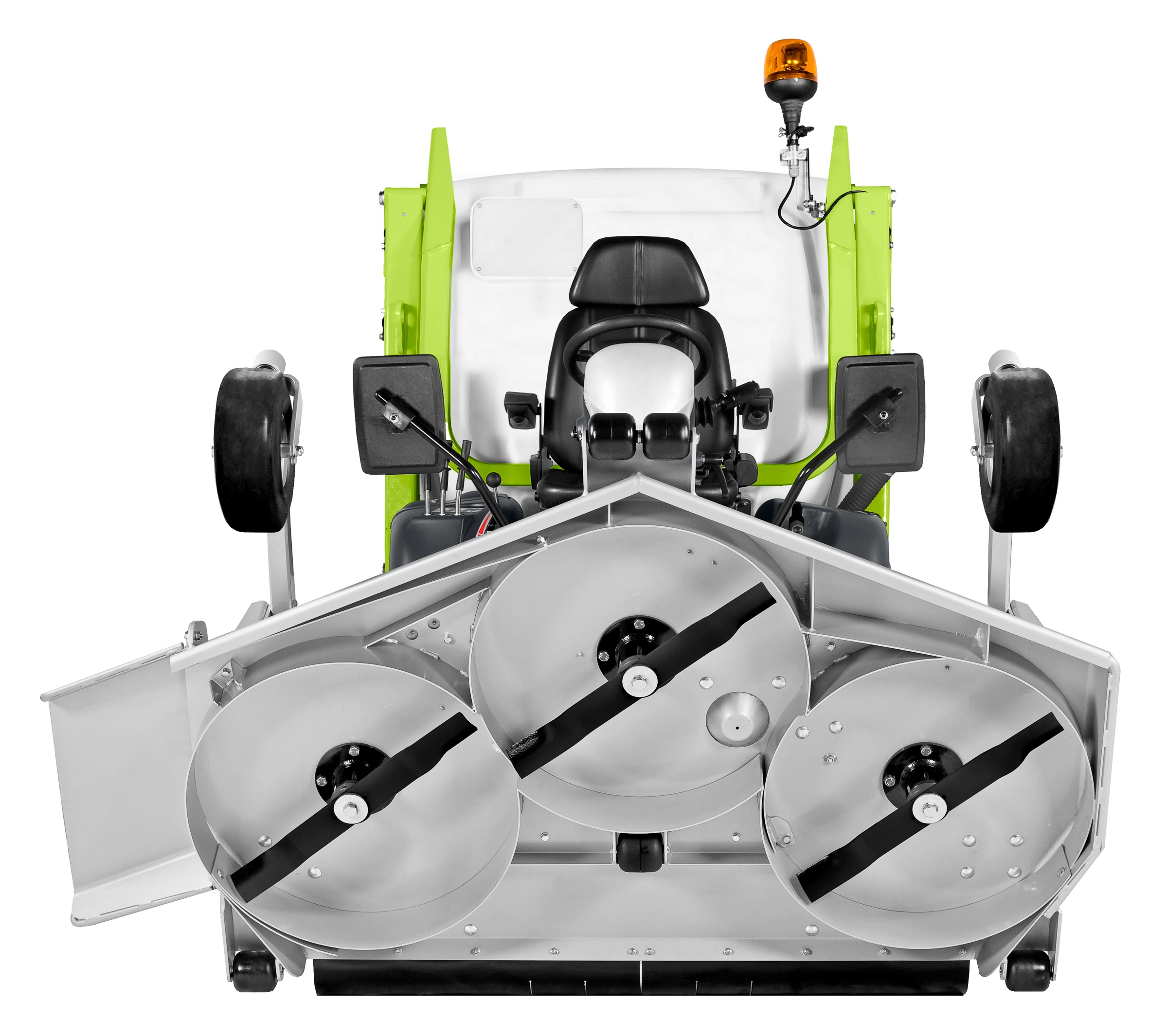 Hydraulischer Mähwerksaushub. Mähwerksantrieb über Kardanwelle und Winkelgetriebe - ohne Keilriemen. Groß dimensionierte Schutzteller unter den fliegend aufgehangenen Messern zum Schutz vor Bodenunebenheiten und Skalpieren. Heckseitige Überladeweite von 50 cm. Schnitthöhenverstellung manuell über Steckbolzen am Mähwerk. Differentialsperre. Automatisch selbstreinigender Umkehrlüfter. Serienmäßig mit StVZO-Ausrüstung. Lenksäule neigungs- und höhenverstellbar. Automatische Abschaltung von Saugturbine und Mähwerk bei vollem Behälter. Komfort-Fahrersitz (auf Wunsch auch luftgefedert). Im Lieferumfang ebenfalls inklusive: der einfach zu montierende Mulchkit zum schnellen Wechseln des Arbeitskonzepts, dabei kann selbstverständlich zur Reduktion von Lärm und Kraftstoff die dann nicht benötigte Turbine separat abgeschalten werden.