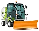Schlegelmähwerk / Vertikutierer mit 1,50 m Arbeitsbreite, Umklapp-Schneeschild mit 1,75 m Arbeitsbreite, Ganzglas-Komfortkabine mit Lüftung und Warmwasserheizung, Klimaanlage