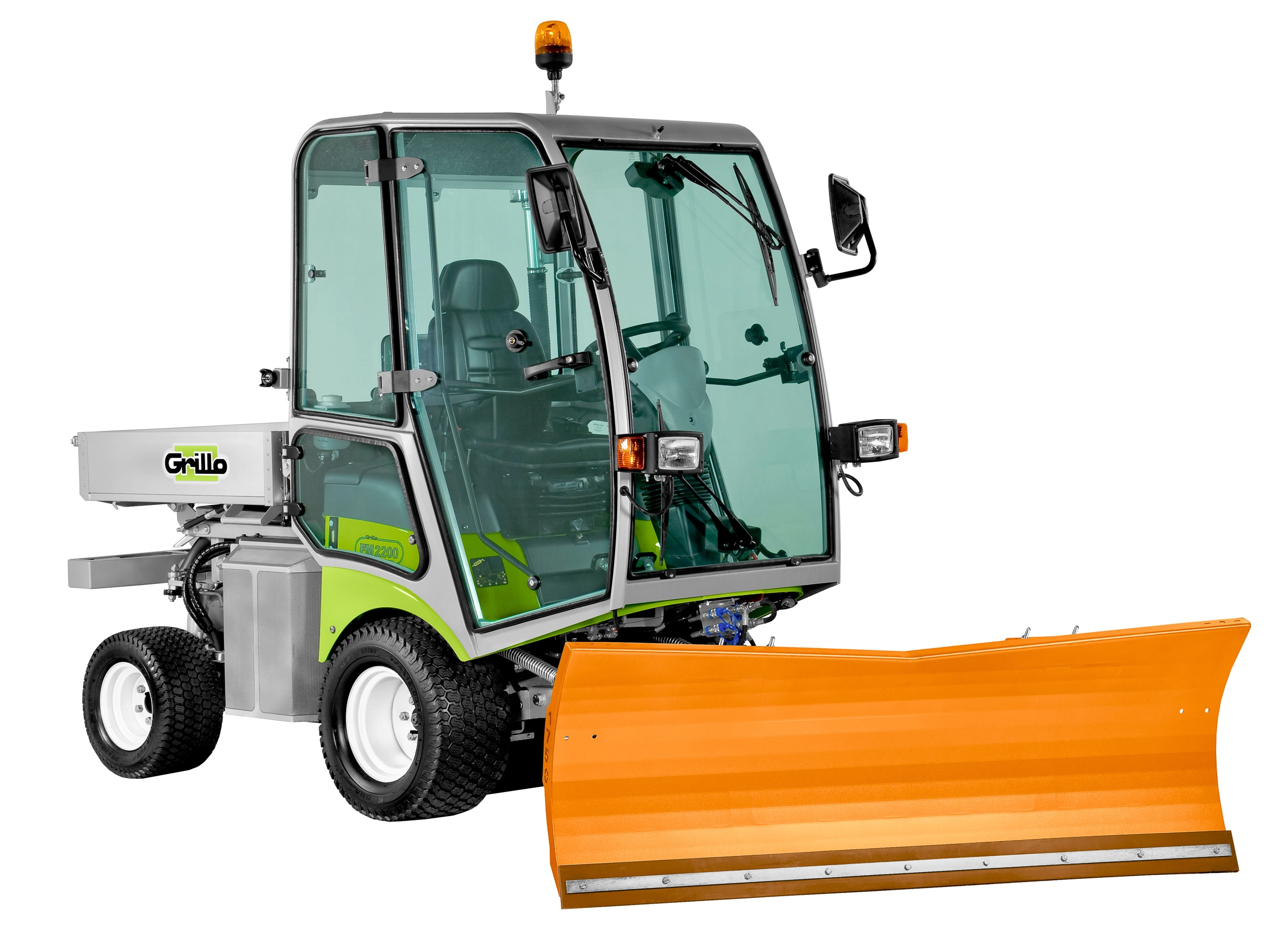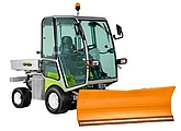 Schlegelmähwerk / Vertikutierer mit 1,50 m Arbeitsbreite, Umklapp-Schneeschild mit 1,75 m Arbeitsbreite, Ganzglas-Komfortkabine mit Lüftung und Warmwasserheizung, Klimaanlage