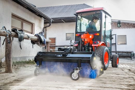 Im Standard alles inklusive- Schmutzkehrwalze mit 52,5 cm, Kehrgutsammelbehälter, hydrl. Entleerungszylinder, zentrale Bürsteneinstellung über 1 Spindel, hydrl. Schwenkzylinder, leistungsstarker Hydromotor, mechanischer seitlicher Niveauausgleich