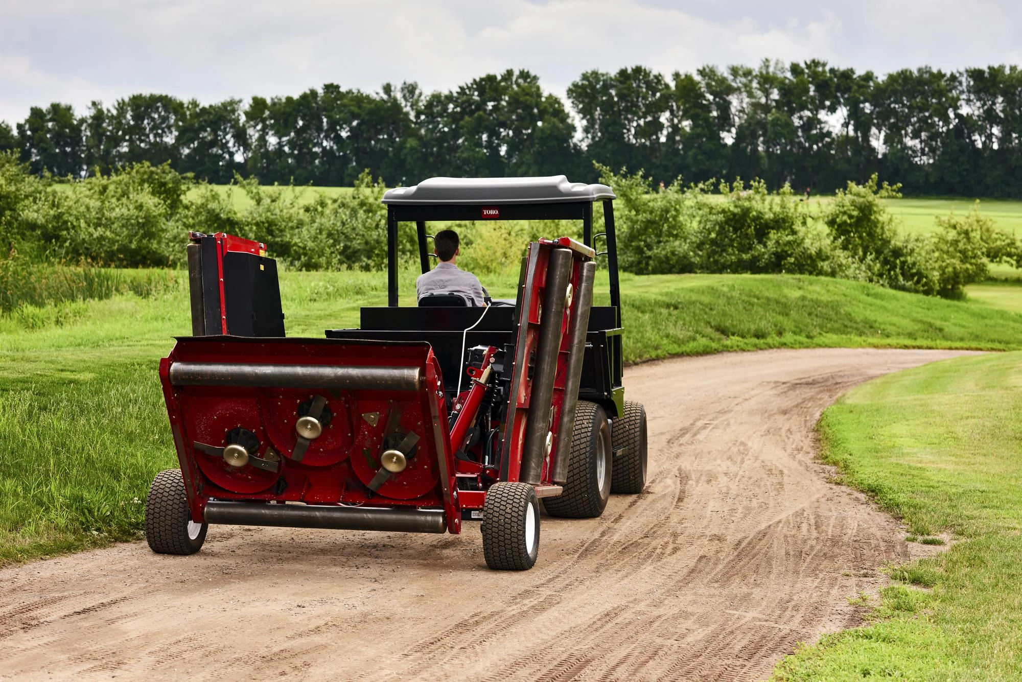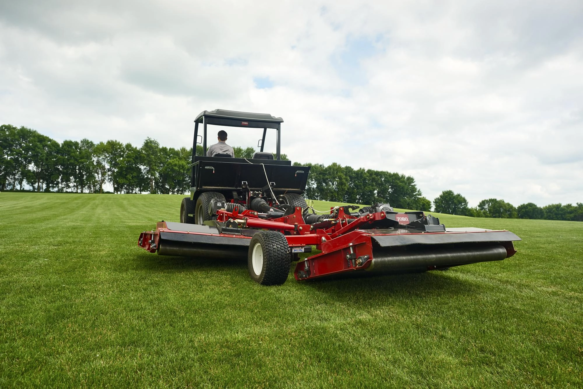 Die drei einzeln aufgehängten, freischwebenden Contour Mähdecks mit einer Schnitthöhe von 12,7 - 102 mm liefern ein absolut einwandfreies Schnittbild. Die festen Front - und Heckrollen bilden ein Top Finish und beugen einer Skalpierung vor. Serienmäßig mit unseren bewährten 32mm Spindelwellen ausgestatten arbeitet dieses Anbaumähwerk mit 9 Messer auf einer Arbeitsbreite von 3.70m und dank des Bi-Direktionalen Anfahrschutzes, bekannt aus unserer Groundsmaster 59XX Serie, sind Sie absolut sicher unterwegs.