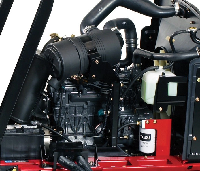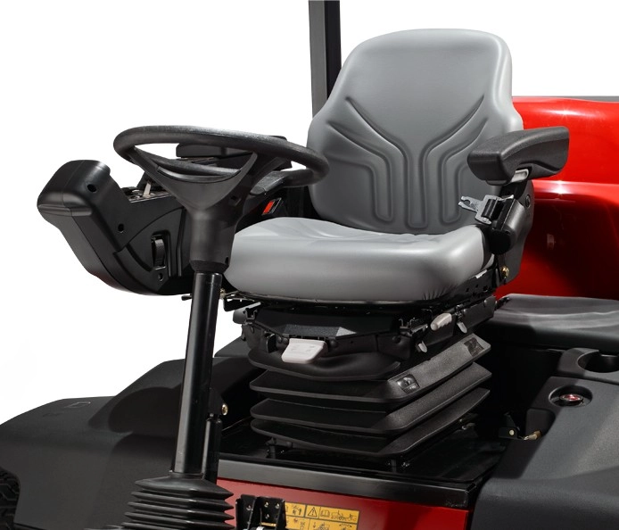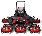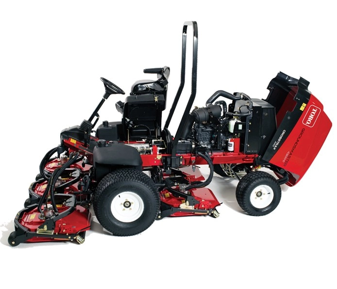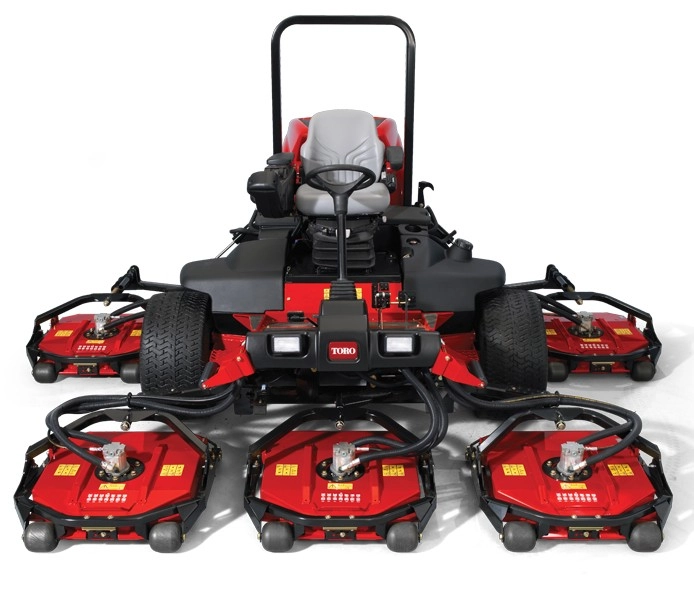 5 (GM 4300 / 4500) bzw. 7 (GM 4700) einzelne, frei schwebende, 56cm (GM 4300) bzw. 69cm (GM 4500/4700) breite und hydraulisch betriebene Contour-Mähköpfe sorgen für das übliche perfekte Toro Schnittergebniss und in Kombination mit den serienmäßigen Heckrollen für ein pefektes Finish. Großzügiger Überschnitt von 16,5cm. Alle Maschinen sind mit dem Toro-CrossTrax-Allradantrieb über 4 einzelne Radmotoren ausgestattet. Hydraulischer Mähwerksaushub. Komfort-Fahrersitz (ab Modell 4500 bereits luftgefedert in Serie) mit Armlehnen für ergonomisches und entspanntes Arbeiten.