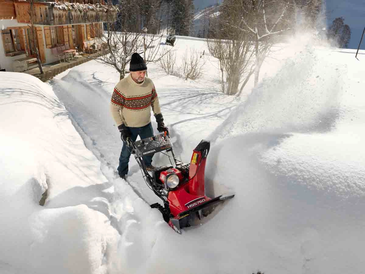Super-Leichtstart-Honda-Motor. 2 seitliche Gleitkufen, Lenkkupplung (Zero-Turn-Funktionalität), Tankanzeige. Kaminverstellung manuell über Hebel am Führungsholm, Arbeitsscheinwerfer.