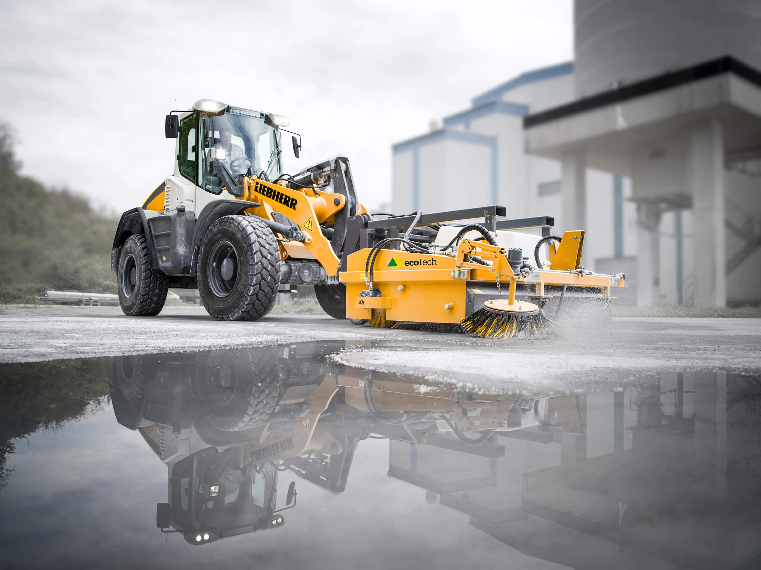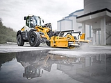 Für den Einsatz in Industrieflächen, auf Parkplätzen, Gehwegen, Straßen, Fahrradwegen für hohe Einsatzgeschwindigkeit. 600 mm starke Hauptkehrwalze mit Vollpoly- oder Stahlmischbesatz, serienmäßig mit Schmutzsammel-