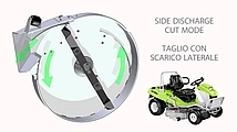 Komfort-Fahrersitz, Fahrantriebssteuerung über Handhebel, hochrobustes und extra verstärktes 3-Messer-Mähdeck, Mähdecksaushub gasdruckdämpfer-unterstützt. Arbeitsscheinwerfer