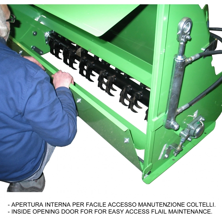 Mulch-Gegenschneide Serie. 2 robuste Front-Laufräder, höhenverstellbar. Heckstützwalze über Spindeln stufenlos höhenverstellbar. Zahnkeilriemen mit automatischem Riemenspanner. Getriebe mit Freilauf. Optionale Ausstattung: Front-Bürsteneinheit zum Aufrichten des Mähguts, breite Front-Tasträder, luftbereifte Front-Tasträder, hydrl. höhenverstellbare Zugdeichsel mit hydrl. höhenverstellbaren seitl. Rädern für den gezogenen Einsatz bzw. Einsatz an Trägerfahrzeugen mit schwacher Heckhydraulik, Mulchklappe zum einfachen Umschalten der Einsatzweise. Einsetzbar im Extensivbereich mit schweren Gußmessern oder im gepflegten Rasenbereich mit Feinschnitt-Messern, auch in Kombination mit Vertikutiermessern.