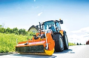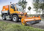 hydraulische Seitenverstellung, Schmutzfangtuch, Laufrollen an Abstellstützen, 200l Wassertank für Heck-3-Pkt.-Anbau mit Sprühdüsen auf der Kehrmaschine, Begrenzungsleuchten, Warnflaggen
