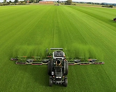 Ab einer Zapfwellenleistung von nur 65 PS erzielen Sie mit dem Trilo R 10 eine unglaubliche Flächenleistung. Kraftübertragung bis zu den Spindelköpfen rein über Gelenkwellen und Winkelgetriebe, daher keine Leckagen möglich. Der R 10 wird hydraulisch mit nur einem Anschluss am Zugfahrzeug kpl. ausgeklappt und auch wieder eingeklappt und erreicht dabei nur 2,5m Transportbreite bei insgesamt 3,0m Höhe. Inklusive kompletter StVZO-Ausrüstung, damit kann er auf jeder Straße problemlos transportiert werden.