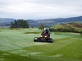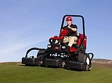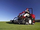 Dieser Leicht-Fairwaymäher bietet auf 208,3 cm Arbeitsbreite einen Schnitt wie Sie Ihn von Ihrem Grünsmäher gewoht sind. Mit seinen 12,7 cm DPA-Schneideinheiten (Dual Precision Adjustment), mit 8- oder 11 Blatt bestückt und 46 cm reite je Einheit, arbeitet er sich bei einer Schnitthöhe von 13 - 38 mm, dank serienmäßigem Allrad mit Leichtigkeit durch jedes Gelände. Er ist dabei mit nur 85 dB(A) im Vollgas mit Abstand der Leiseste. Dabei erreicht er eine Arbeitsgeschwindigkeit von bis zu 11,3 km/h und eine Transportgeschwindigkeitvon 16,1 km/h. Kinderleichte Bedienung der Einheiten per Joystick. Sonstige Bedienelemte wie z.B. Lenkradwinkel, Spindeldrehzahl oder die Läppfunktion, können mühelos und ohne Werkzeug eingestellt werden. Außerdem ist der 3-Rad betriebene Mäher aufgrund seiner hydraulischen Hinterradlenkung bei weitem Wendiger als herkömmliche Fairwaymäher.