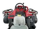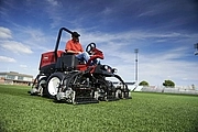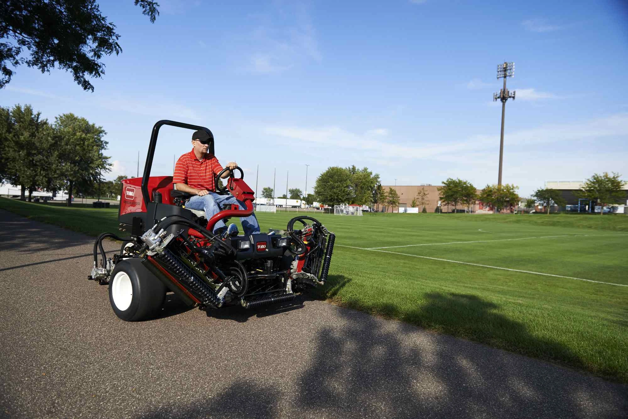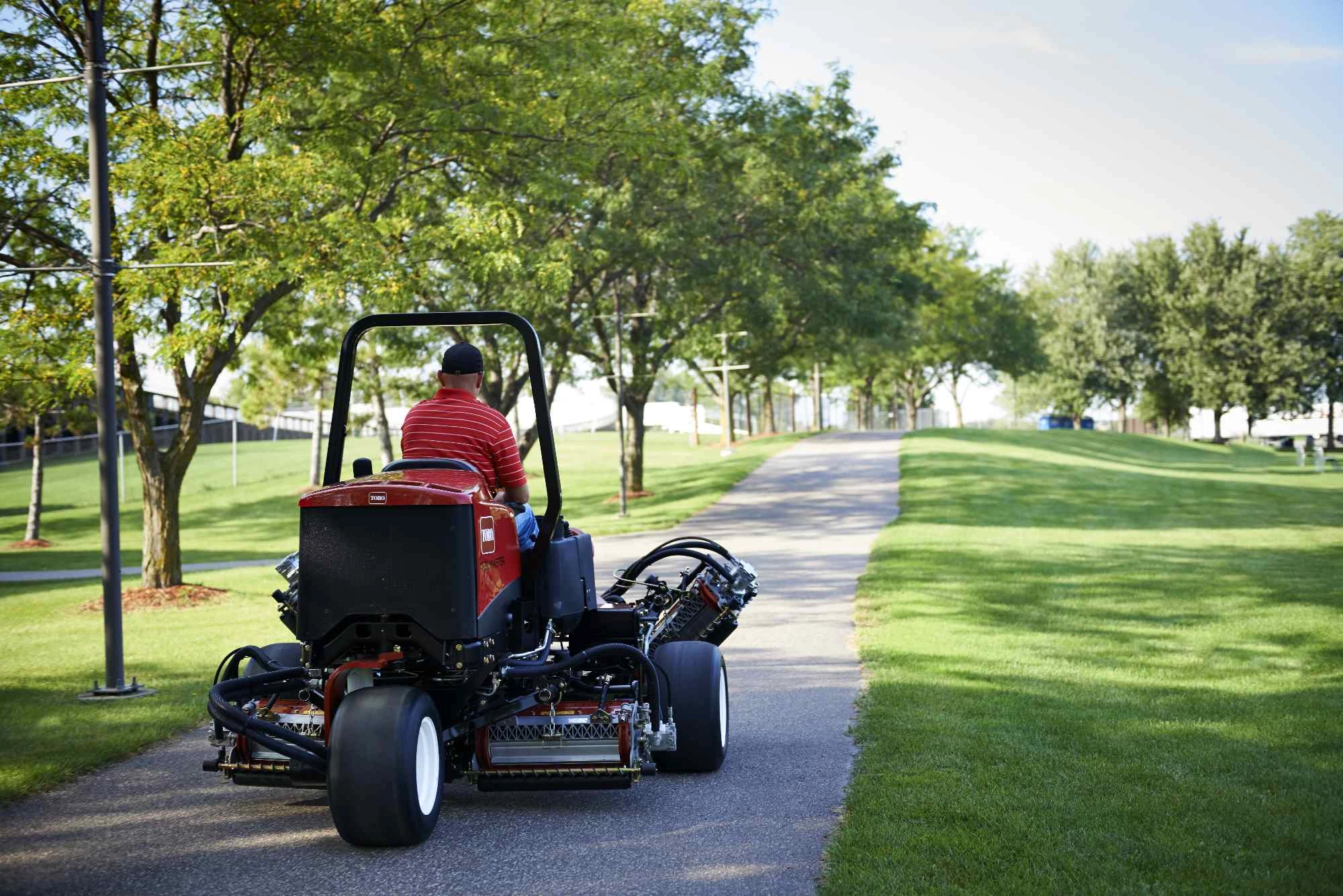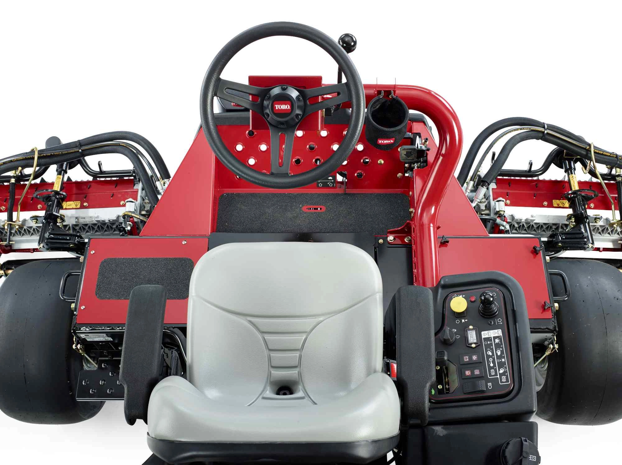 Dieser Leicht-Fairwaymäher bietet auf 254 cm Arbeitsbreite einen Schnitt wie Sie Ihn von Ihrem Grünsmäher gewoht sind. Mit seinen 17,8 cm DPA-Schneideinheiten (Dual Precision Adjustment), mit 8- oder 11 Blatt bestückt und 56 cm Beite je Einheit, arbeitet er sich bei einer Schnitthöhe von 13 - 38 mm, dank serienmäßigem Allrad mit Leichtigkeit durch jedes Gelände. Er ist dabei mit nur 85 dB(A) im Vollgas mit Abstand der Leiseste. Dabei erreicht er eine Arbeitsgeschwindigkeit von bis zu 11,3 km/h und eine Transportgeschwindigkeitvon 16,1 km/h. Kinderleichte Bedienung der Einheiten per Joystick. Sonstige Bedienelemte wie z.B. Lenkradwinkel, Spindeldrehzahl oder die Läppfunktion, können mühelos und ohne Werkzeug eingestellt werden. Außerdem ist der 3-Rad betriebene Mäher aufgrund seiner hydraulischen Hinterradlenkung bei weitem Wendiger als herkömmliche Fairwaymäher.