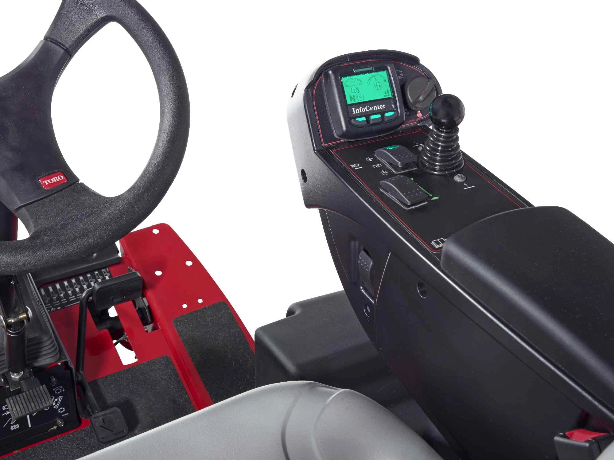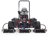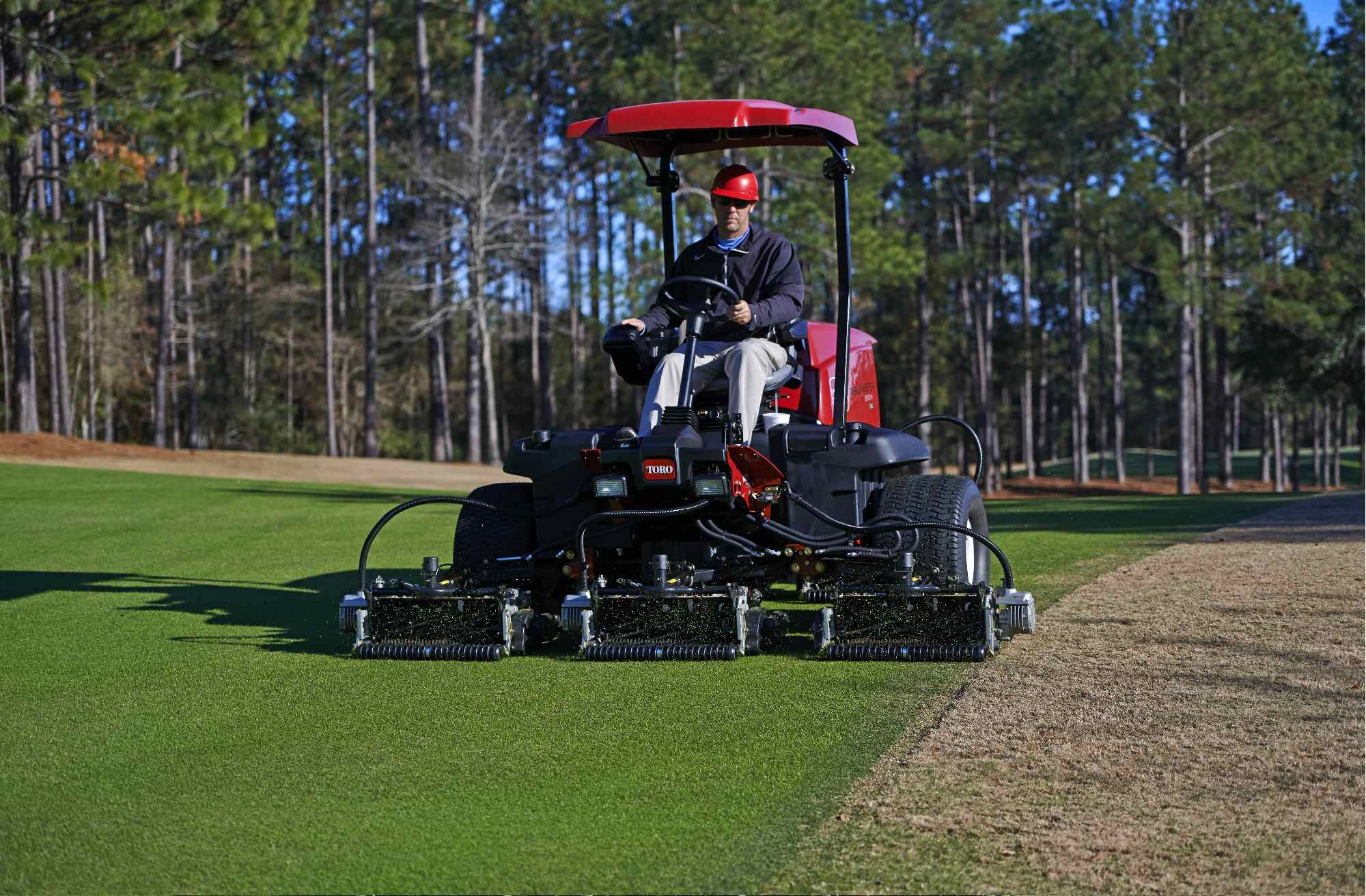Dieser Hybrid-Fairwaymäher bietet auf 254 cm Arbeitsbreite einen absolut perfekten Schnitt. Mit seinen 17,8 cm DPA-Schneideinheiten (Dual Precision Adjustment), mit 8- oder 11 Blatt bestückt und 56 cm Beite je Einheit, arbeitet er sich bei einer Schnitthöhe von 6,4 - 50,8 mm, dank dem optionalen Allrad mit Leichtigkeit durch jedes Gelände. Sprittsparend und unglaublich effizient, dank der neuen PowerMatch Technologie liefert der 3-Zylinder Dieselmotor in Kombination mit dem 48V Batteriepack eine Höchstleistung von 40PS wann immer er sie braucht. Dabei erreicht er eine Arbeitsgeschwindigkeit von bis zu 12,8 km/h und eine Transportgeschwindigkeit von 16 km/h. Kinderleichte Bedienung der Einheiten per Joystick. Präzise Überwachung und Kontrolle über das InfoCenter. Sonstige Bedienelemte wie z.B. Lenkradwinkel, Spindeldrehzahl oder die Läppfunktion, können mühelos und ohne Werkzeug eingestellt werden. Außerdem ist er aufgrund seiner hydraulischen Hinterradlenkung sehr wendig.
