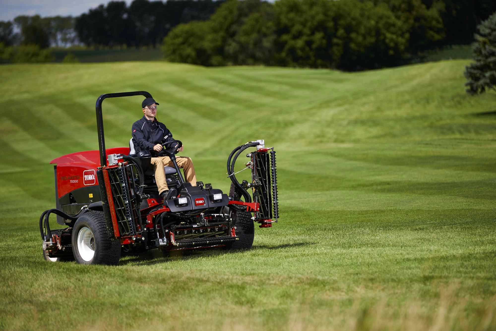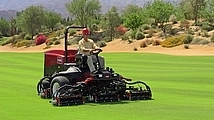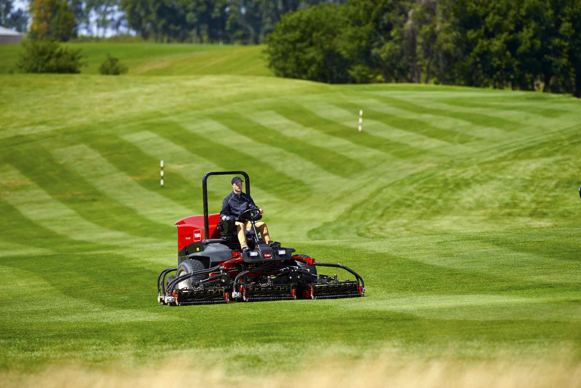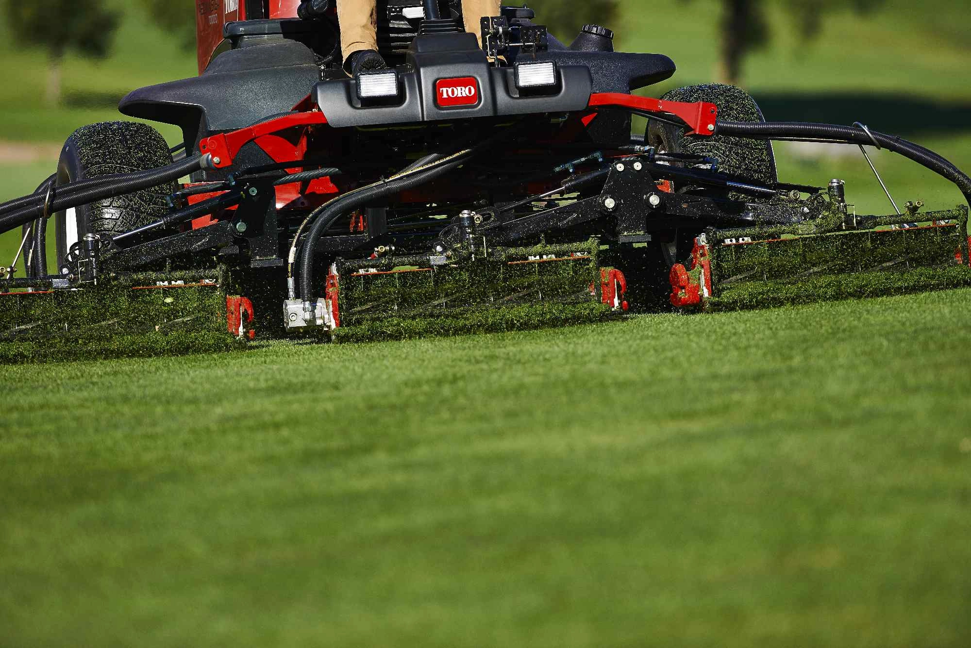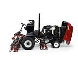 Dieser Großflächen-Fairwaymäher bietet auf 307, oder 320 cm Arbeitsbreite einen erstklassigen Schnitt. Mit seinen 17,8 cm DPA-Schneideinheiten (Dual Precision Adjustment), mit 8- oder 11 Blatt bestückt und 68,6 oder 81,3 cm Beite je Einheit, arbeitet er sich bei einer Schnitthöhe von 6,4 - 63,5 mm, dank dem serienmäßigen CrossTrax-Allrad mit Leichtigkeit durch jedes Gelände. Der 4-Zylinder Turbodieselmotor liefert ausreichend Leistung für jedes noch so steile Gelände und hohes Gras. Dabei erreicht er eine Arbeitsgeschwindigkeit von bis zu 11 km/h und Transportgeschwindigkeit von bis zu 22,5 km/h. Kinderleichte Bedienung der Einheiten per Joystick. Präzise Überwachung und Kontrolle über das InfoCenter. Sonstige Bedienelemte wie z.B. Lenkradwinkel, Spindeldrehzahl oder die Läppfunktion, können mühelos und ohne Werkzeug eingestellt werden. Außerdem ist er aufgrund seiner hydraulischen Hinterradlenkung sehr wendig.
