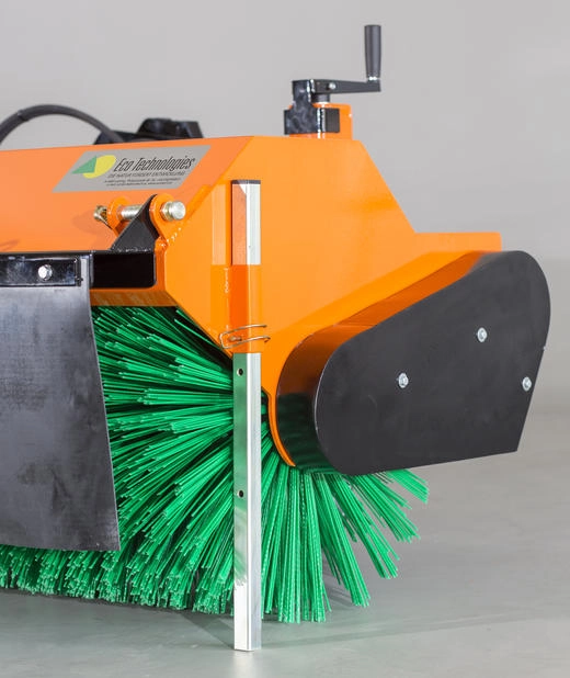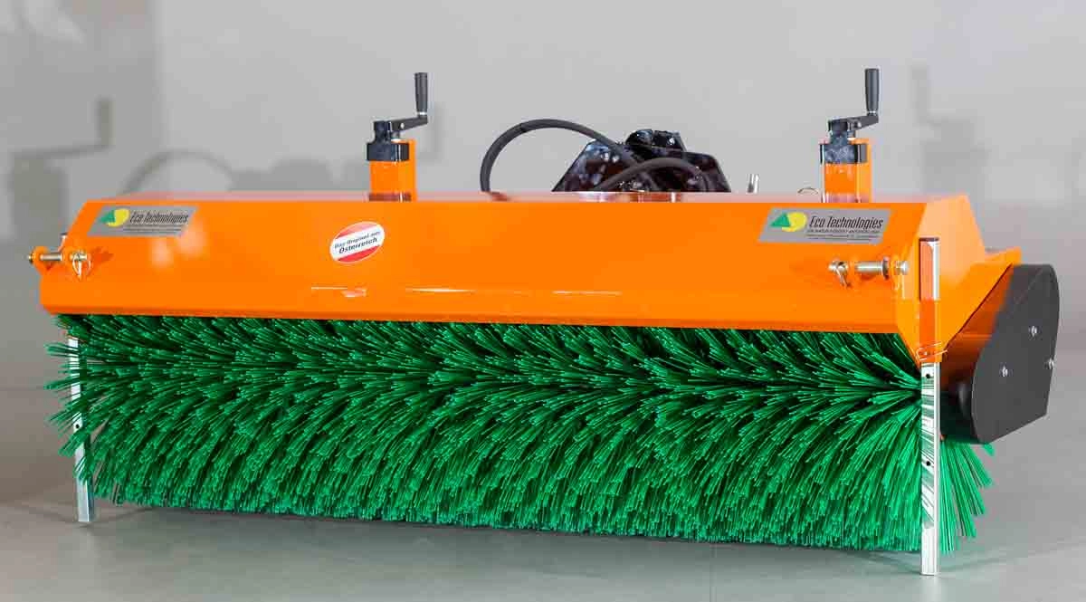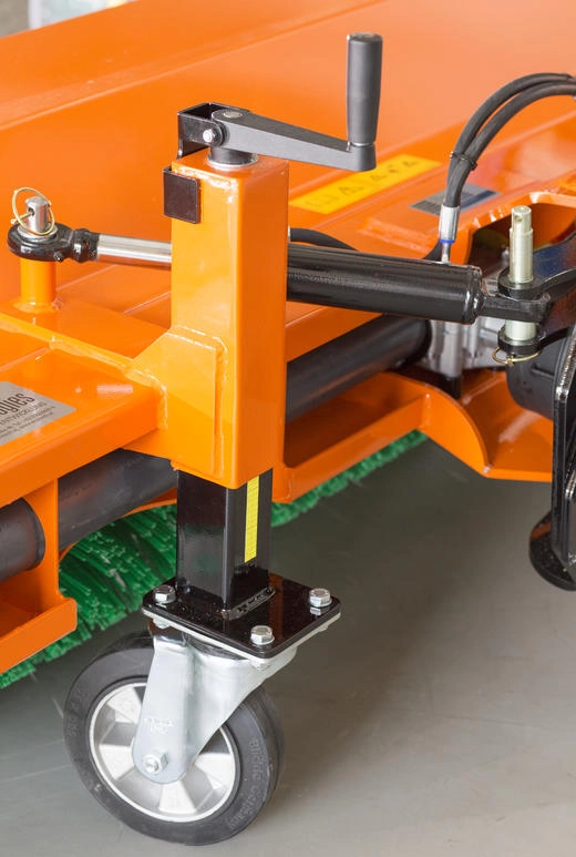 Äußerst Stabil und mit masivem Rahmen mit 525mm Hauptkehrwalze mit Schmutzkehrwalze oder mit Schneekehrwalze, beidseitig gelagerte Bürstenwelle für hohe Stabilität, Bürsteneinstellung über Spindeln, mechanischer horizontaler Niveauausgleich, ab 1,8m Modell mit Doppel-kette und verstärktem Getriebe.