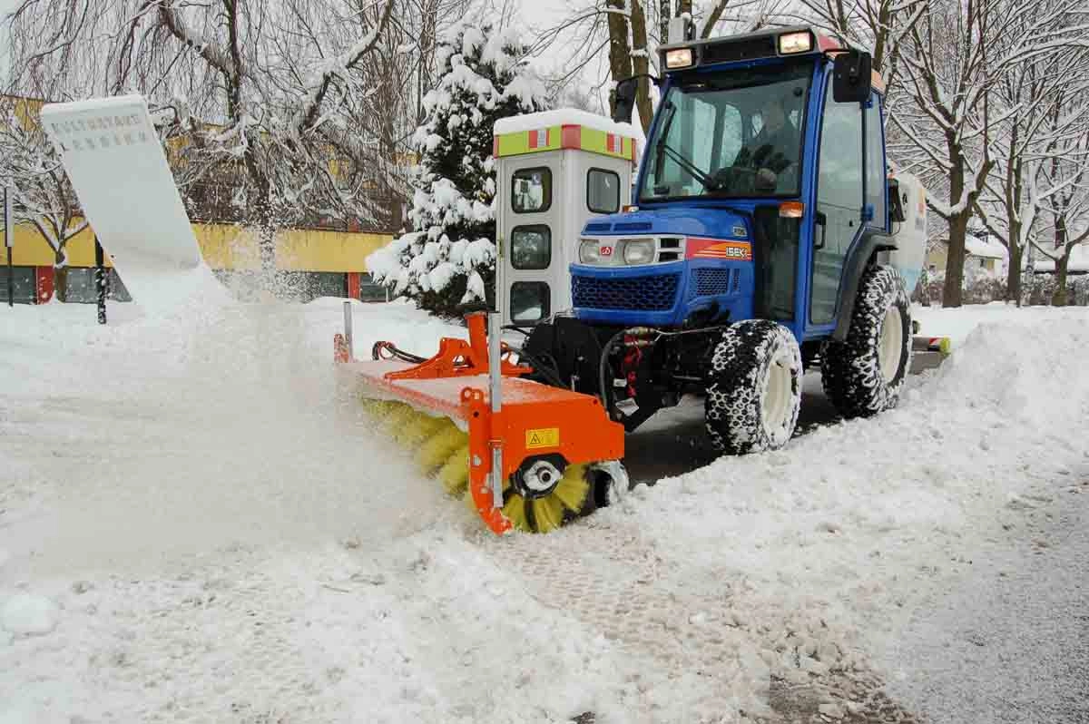 50cm Kehrwalze - mit Schmutzkehrwalze oder Schneekehrwalze, zentrale Bürsteneinstellung über 1 Spindel, stabiler und verwindungssteifer Rahmen, kompakter Anbau, seitliche geschlossene Wände damit kein Kehrgut verloren geht, beidseitig gelagerte Walze, mechanischer, seitlicher Niveauausgleich, Hydro-Motor im Gerät integriert und dient als Anfahrschutz und geringe Gesamtbreite.