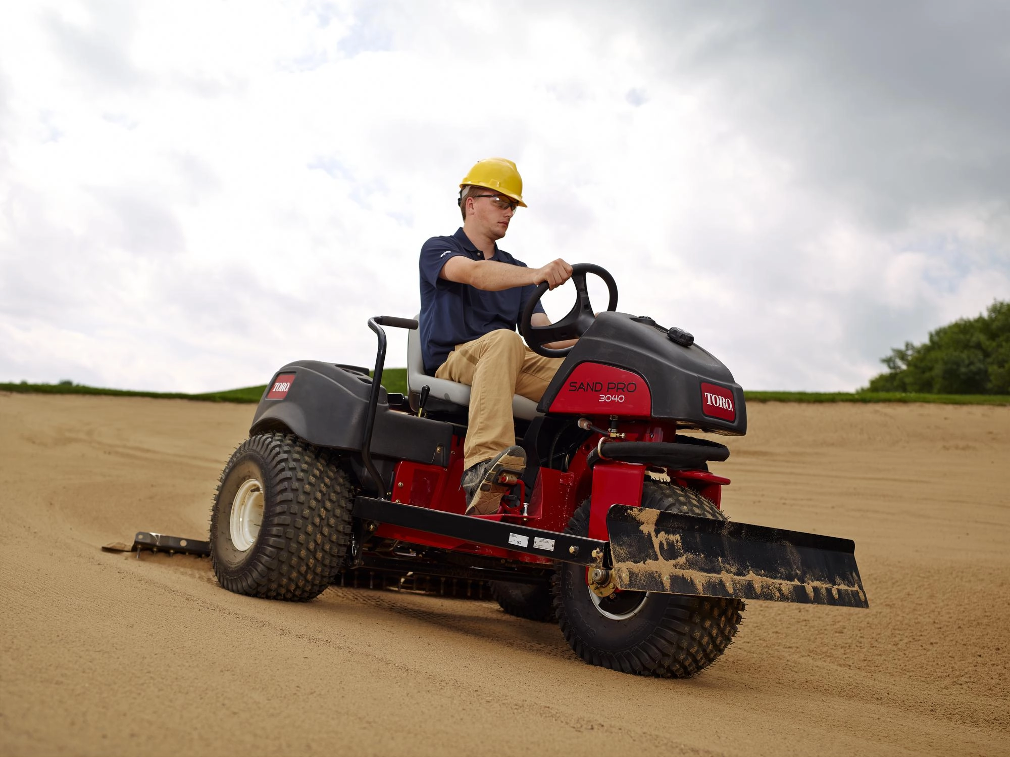 Dieser Bunkerrechen von Toro ist aufgund seiner unzählingen Anbaugeräte eine muss für jeden Golfplatz. Der werksseitig verbaute 2-Zylinder Kawasaki Benzinmotor liefer mit 16 PS max. Motorleistung genügend Leistung, um auch in den schwierigsten und tiefsten Bunker, mühelos voran zu kommen. Das optionale QAS-Schnellwechselsystem bietet einen werkzeuglosen Tausch der Anbaugerät innerhalb kürzester Zeit. Sie arbeiten mit dem hydrostatisch betrieben Fahrzeug bei 16 km/h Höchstgeschwindigkeit und permanentem Allradantrieb. Mechanische Lenkung.