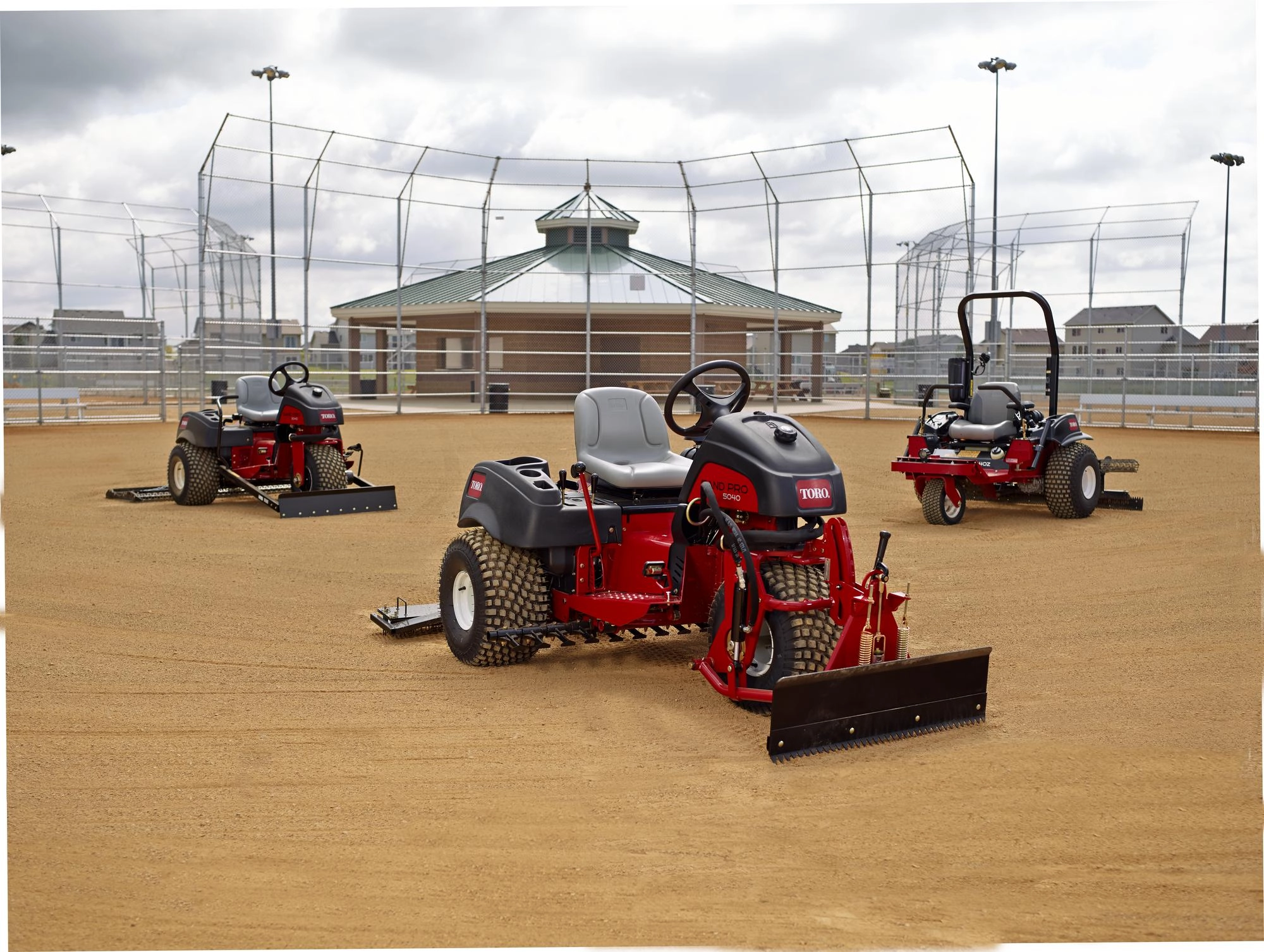 Frontkuppeldreieck, QAS Schnellwechseldreieck hinten, Hydraulisches oder manuelles Frontschild 102 cm, Schildverbreiterung auf 152 cm, Zahnrechen, Schleppmatte, mehrteiliger Besen, Besen für Zahnrechen, Rasenbesen, drehnede Glättscheiben, Federrechen, Nagelrechen, Synthetisches Rasenpflegegerät, QAS-Finish-Grader, QAS-Rasenlüfter, QAS-Laubbläser, Rahn-Groomer, profillose Reifen, Rasenreifen, Bunkerpumpe, Erweiterungsschlauchpaket für Pumpe, Lippenbesen