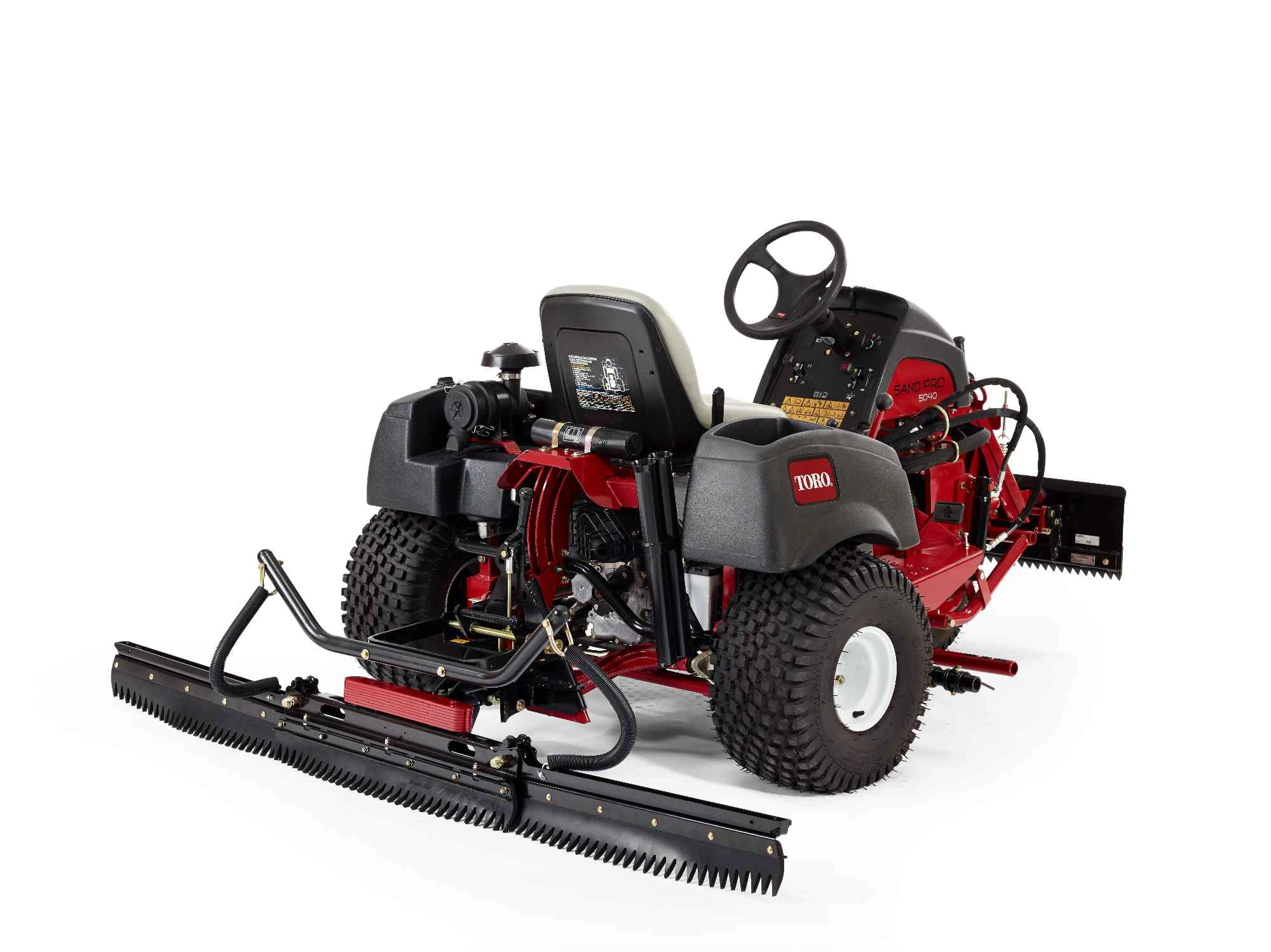 Dieser Bunkerrechen von Toro ist aufgund seiner unzählingen Anbaugeräte eine muss für jeden Golfplatz. Der werksseitig verbaute 2-Zylinder Kawasaki Benzinmotor liefer mit 18 PS max. Motorleistung genügend Leistung, um auch in den schwierigsten und tiefsten Bunker, mühelos voran zu kommen. Das optionale QAS-Schnellwechselsystem bietet einen werkzeuglosen Tausch der Anbaugerät innerhalb kürzester Zeit. Sie arbeiten mit dem hydrostatisch betrieben Fahrzeug bei 16 km/h Höchstgeschwindigkeit und permanentem Allradantrieb. Hydraulische Servolenkung.