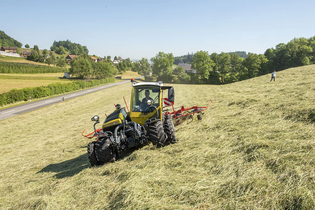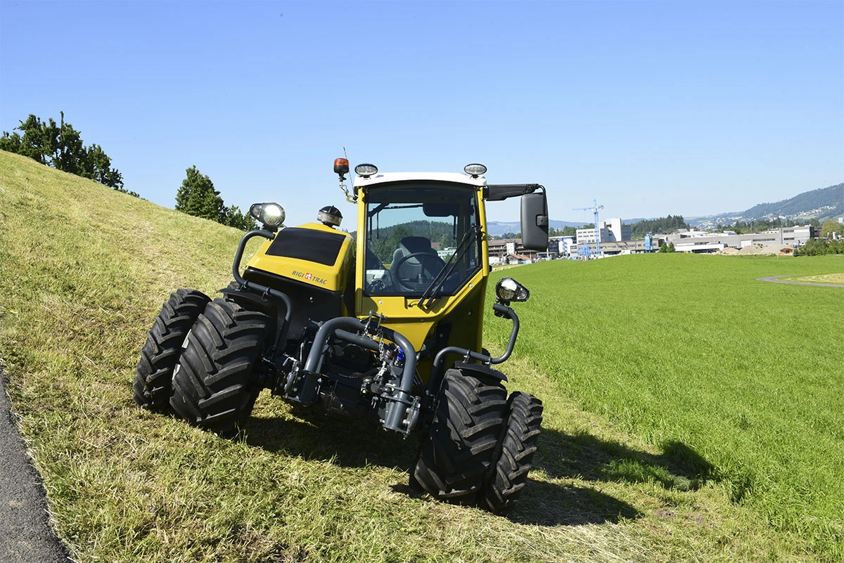 Begegnen auch Sie der nächsten Generation von Hang-Mäh-Traktoren. Innovative Ideen haben das schweizer Unternehmen Rigitrac schon immer ausgezeichnet! Hier das neueste Mitglied der Produktfamilie. Mit permanentem Allrad, dem von Rigitrac bekannten Chassisbaurahmen mit zentralem Drehgelenk, der sich bis zu 15° verdrehen lässt, und natürlich dem in 2 Fahrgruppen schaltbaren, stufenlosen, hydrostatischen Fahrantrieb sucht dieses Fahrzeug seines Gleichen! Hochwertigste Komponenten, eine solide und üppige Grundausstattung, sowie eine Vielzahl an Extras und Optionen lassen hier keine Wünsche offen. Lassen Sie sich begeistern!
