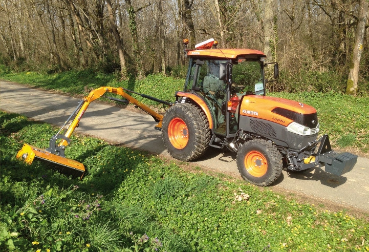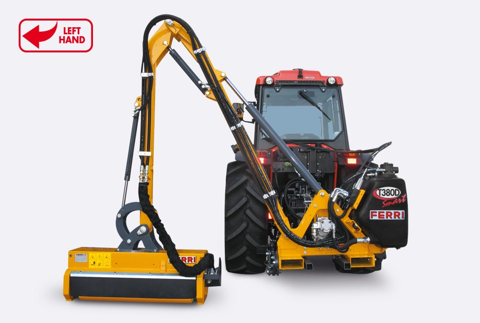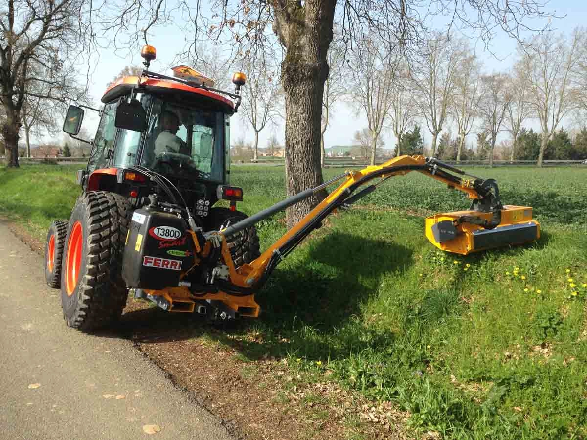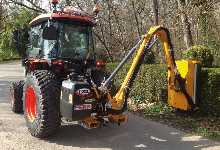 Electra-Bedienkonsole mit progressiver Elektro-Steuerung, 3-Pkt.-Verstrebungen, Delta-Kupplung, Ölkühler mit Thermostat, Hydraulischer Anfahrschutz am 1. Arm, 1,5m Heckenschneidkopf