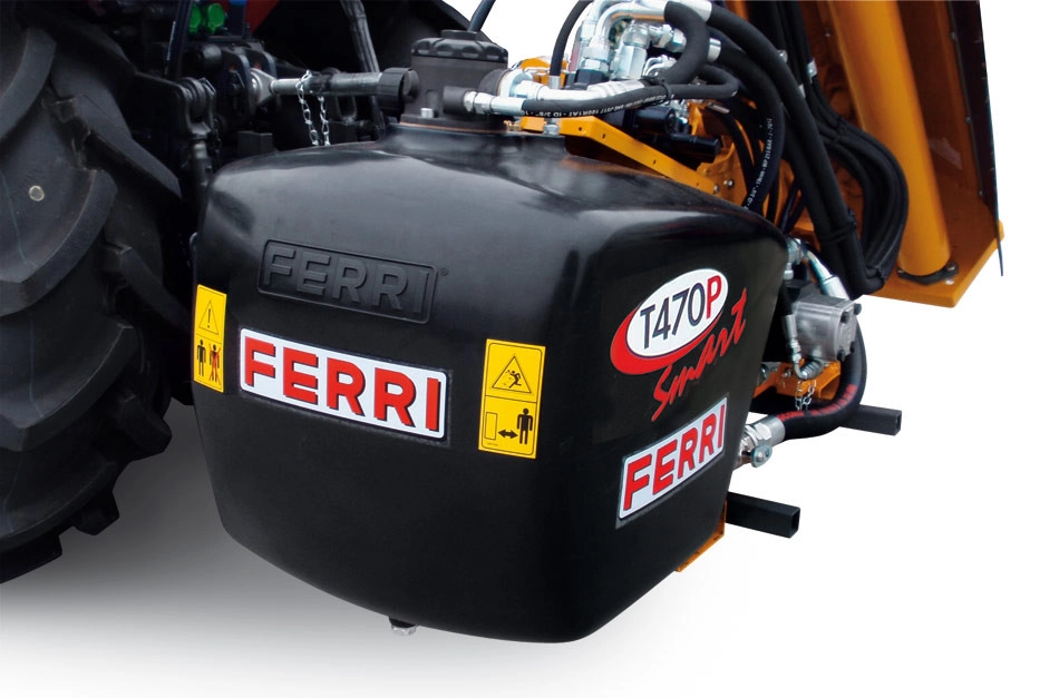 3-Pkt.-Verstrebungen, Delta-Kupplung, StVZO-Beleuchtungsleiste, Ölkühler mit Thermostat, zusätzlicher hydraulischer Anfahrschutz am 1. Arm, 1,5m Heckenschneidkopf