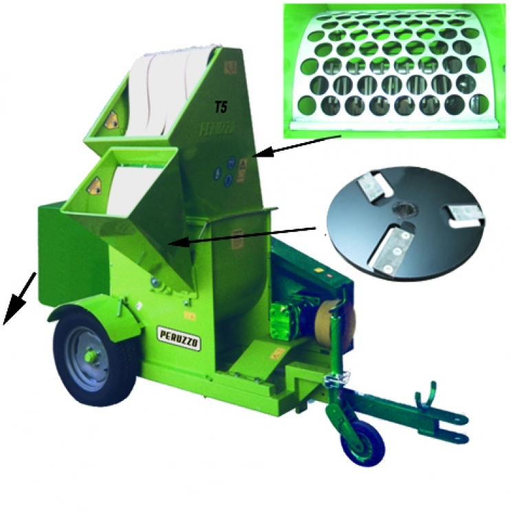 Siebweiten von 20 - 50 mm wahlweise orderbar. 2 Einfülltrichter für ergonomisch angenehme Arbeitsposition. Hammerwerk und Häckselscheibe mit bodennahem Auswurf. Bis 10cm Materialstärke