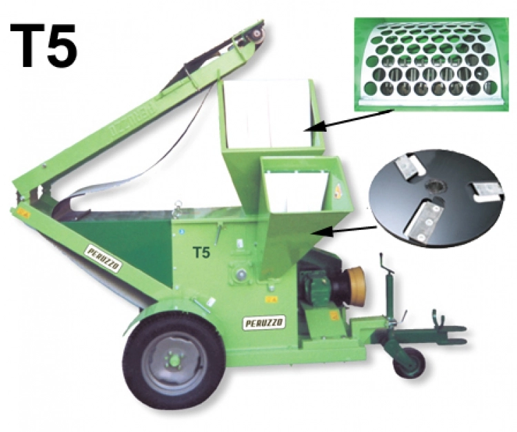 Siebweiten von 20 - 50 mm wahlweise orderbar. 2 Einfülltrichter für ergonomisch angenehme Arbeitsposition. Hammerwerk und Häckselscheibe mit bodennahem Auswurf. Bis 10cm Materialstärke