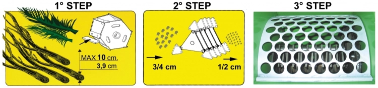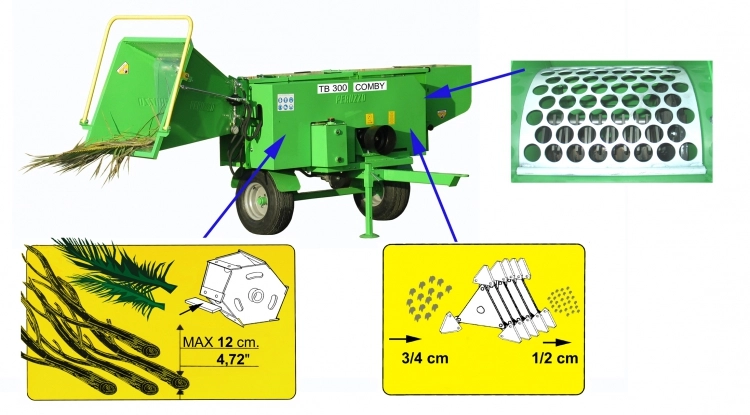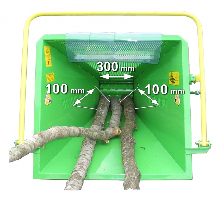 Extra breite Trommelzuführung für effizientes, zeitsparendes Arbeiten. Optional mit Anti-Stress-System. Wahlweise mit 3-Messer Trommelwerk bis 10 cm Materialstärke oder 6-Messer Trommelwerk bis 12 cm Materialstärke. Optional mit Betriebsstundenzähler und hydrl. Regelventil für variable Einzugsgeschwindigkeit. Großer Einfülltrichter mit 30x16cm - einstellbarer Auswurfkamin - bis 12cm Materialstärke