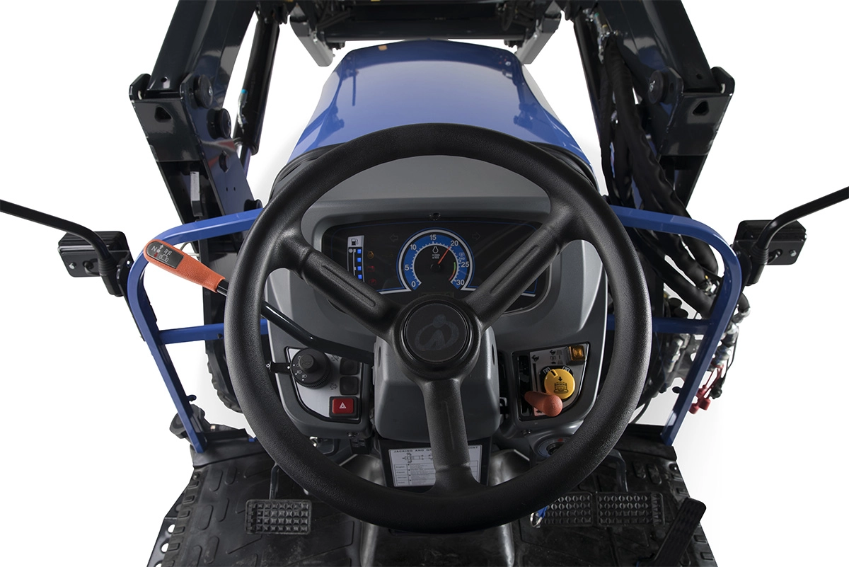 Hier nun ergänzt durch ein Performance-Modell mit satten 54 PS, 4 Vorwärts- wie Rückwärts-Gängen in 3 Gruppen schaltbar und mit Shuttle-Shift Wendeschaltung direkt am Lenkrad. Im Standard mit Heck-3-Pkt.-Kraftheber Kat. 1, Heckzapfwelle mit Softanlauf, 2 doppeltwirkenden Anschlüssen im Heck mit Schwimmstellung, erhältlich als offene Plattform-Maschine mit Heckbügel. Optional erhalten Sie ein leistungsstarkes Frontladerprogramm mit Euro-Aufnahme. Gesteuert über den optionalen Kreuzhebel-Joystick bequem vom Fahrerplatz aus. Manuelle, stationäre Zapfwellenschaltung am Kotflügel ist dabei schon mit inbegriffen.