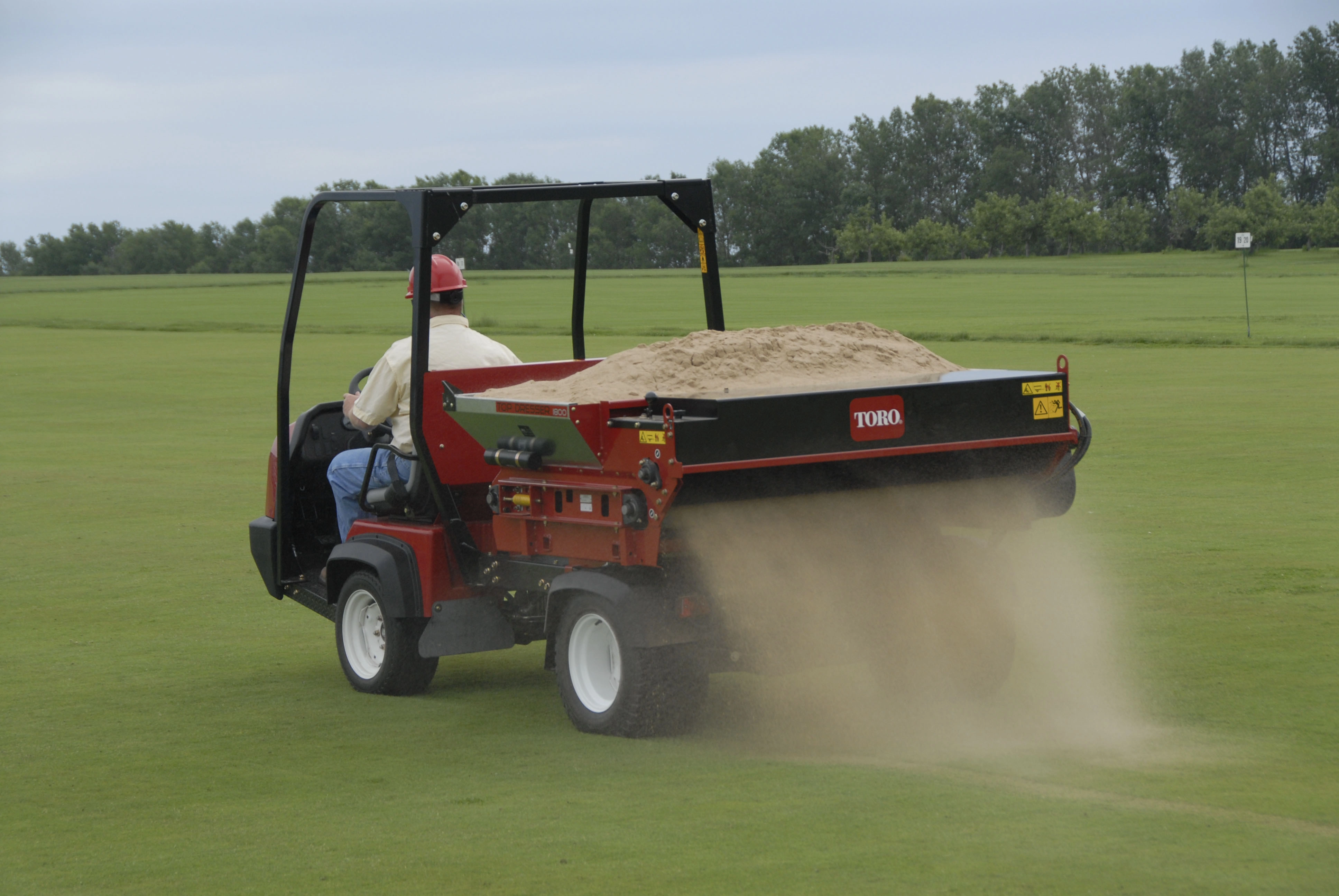 Der Toro Topdresser 1800 - ein professioneller Besander der Ihre Arbeiten am Golfplatz verfeinert und für ein exaktes Ergebniss steht.