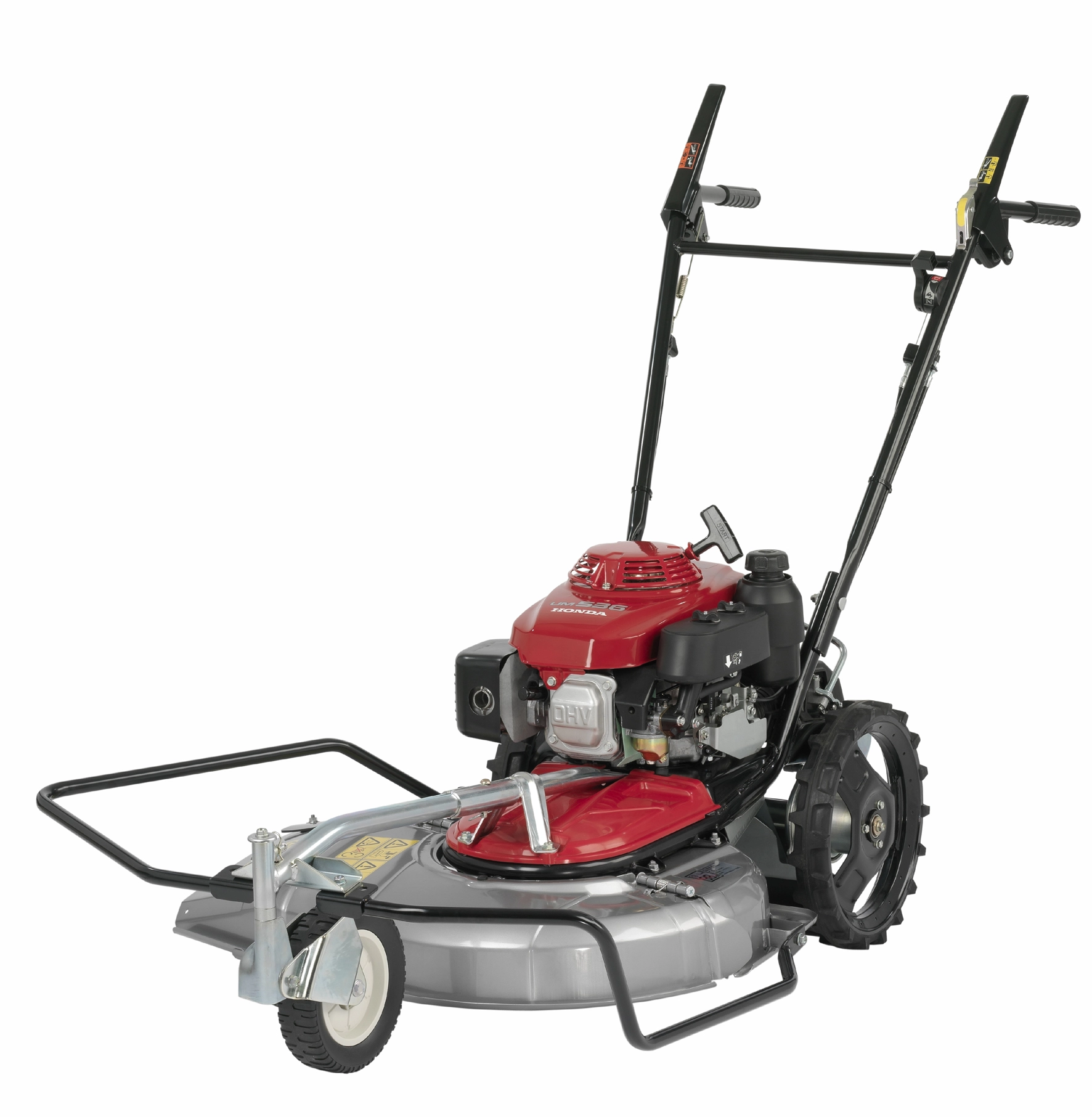 Hochgras-/Wiesenmäher mit 2-Gang-Radantrieb (0,5-0,8 m/s). Serienmäßig mit Roto-Stop (Komfort-Messerkupplung) und hochkarätiger Honda-Profi-Motorenserie GXV: Zylinderlaufbuchsen und in speziell angepassten Lagern laufende Kurbelwellen aus Gusseisen für lange Lebensdauer, doppelte Luftfilter sowie ein extragroßer 1,6 Ltr. Kraftstofftank für längere Einsatzzeiten zwischen Betankungen.