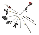 Freischneider, Gartenhacke, Schaftverlängerung lang, Schaftverlängerung kurz, Heckenschere lang, Heckenschere kurz, Hochentaster, Laubbläser, Kantenschneider