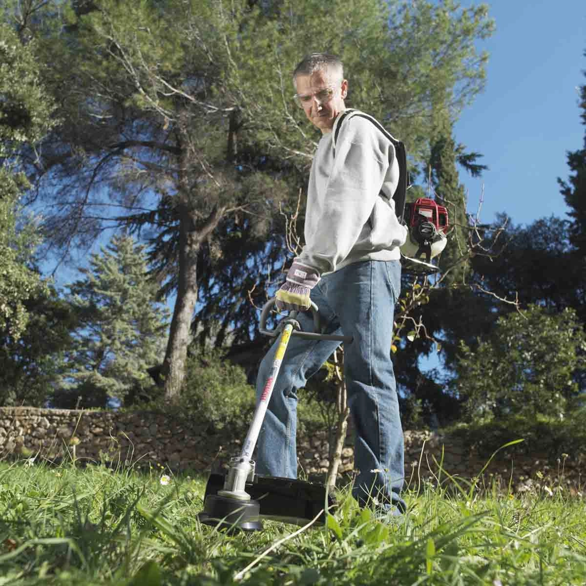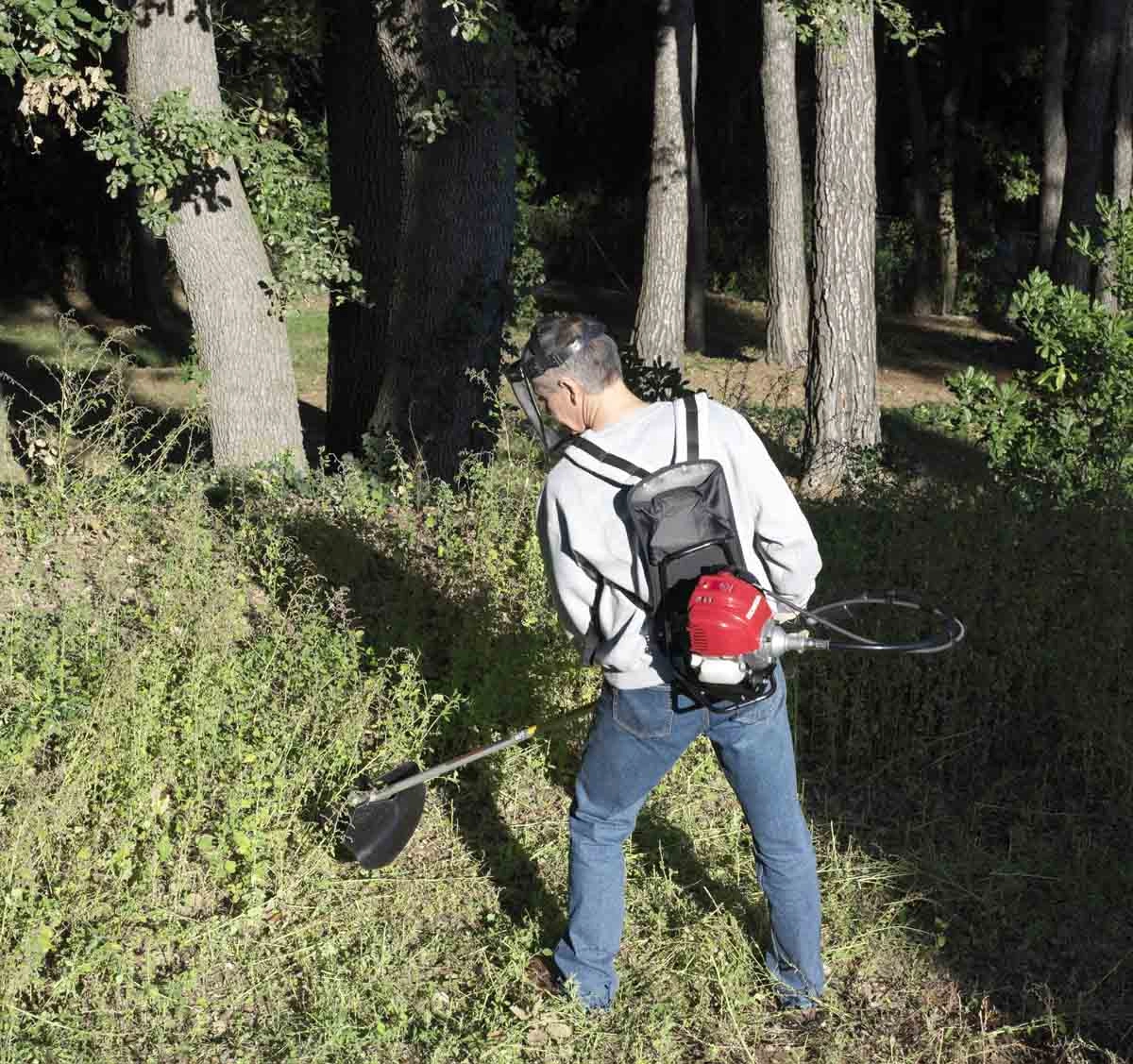 Damit für Sie das Arbeiten leichter fällt - Rückentragbarer Freischneider mit flexiblem Schaft und halbautomatischem Fadenkopf.