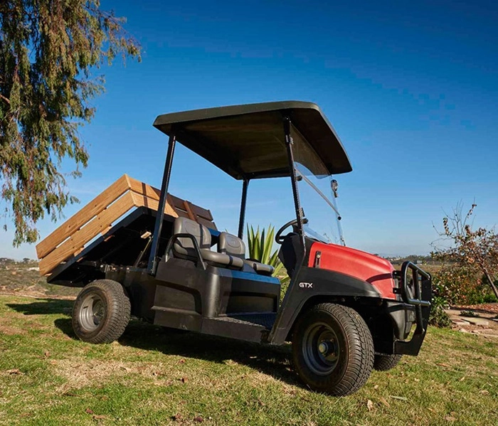 Der GTX ist wahlweise als 2- oder 4-Sitzer, mit einzelnen Sitzen oder durchgängiger Sitzbank und großzügige Ladepritsche ausgestattet. Offen oder mit Sonnenschutzdach und klappbarer Frontscheibe. Hydraulische Scheibenbremsen vorne und hinten sowie die modifizierten McPherson-Federeine vorne, bewegliche Schwenkarme auf der Hinterachse und 4 einstellbare Coil-Over-Stoßdämpfer an allen 4 Rädern gehören beim GTX zur Serienausstattung. Mit nur 6,3 m Wendekreis ist der GTX extrem wenig und lässt sich über sein 35cm großes Lenkrad mit Zahnstangenlenkung ergonomisch optimal bedienen. Modernste Ausstattung mit USB-Steckdose, Scheinwerfer, Fahrtrichtungsumschalter, 2 Getränkehalter, Radiohalter und drei Ablagefächer im Armaturenbrett runden das Gesamtpaket sinnvoll ab.