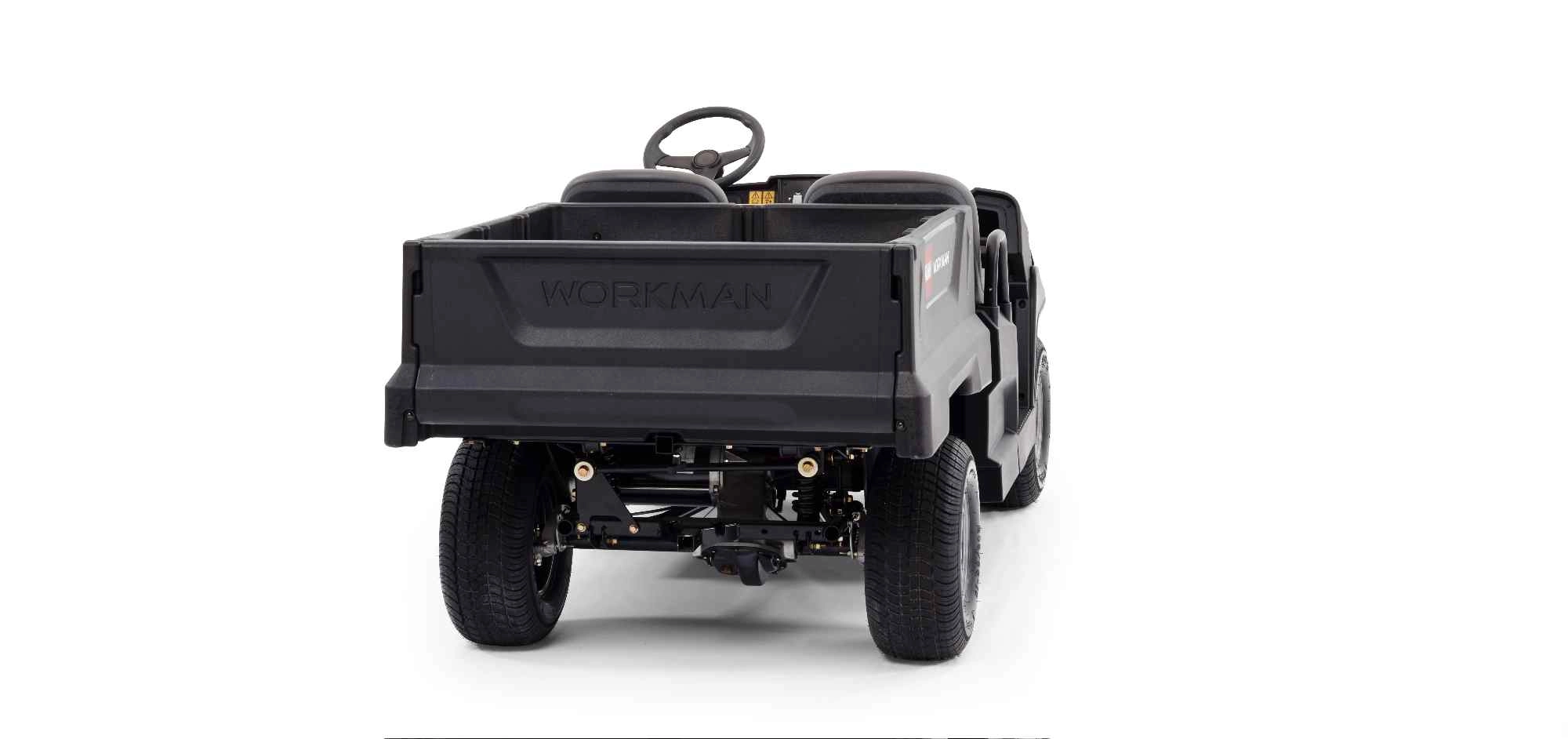 Der Workman ist mit einem erhöhten Fahrwerk mit Aluminiumrädern, einem im Fahrzeug integrierten Hocheffizienten 900-W-Smart-Ladegerät und Lithium-Ionen-Batterien ausgestattet. Durch seine Vielseitigkeit und Flexibilität, passt sich der Workman jeder Arbeitsaufgabe an. Ein ergonomisch gestaltetes Lenkrad, intuitive Bedienelemente, USB-Standardanschuss, Coil-Over-Stoßdämpfer, exklusive hydraulische Scheibenbremsen, wartungsfreie Akkus, verbessertes Leistungsgewicht, verlängerte Akkulebensdauer und die größte Ladekapazität seiner Klasse, machen den Workman Lithium-Ionen-GTX zu einem unübertroffenen Crossover-Fahrzeug.