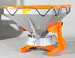 Gummi-Streuschutzschürze, Streubreiteneinstellung elektrisch, Streumengeneinstellung elektrisch, Hydro-Motor-Mengenregelventil hydraulisch, Fahrwegsabhängige Proportionalsteuerung, Abdeckplane PVC, Aufsatzringe zur Erhöhung des Streuvolumens: Modell 140 -> auf 210 Ltr., Modell 250 -> auf 360 Ltr., Modell 450 -> auf 600 Ltr., Modell 600 -> auf 750 Ltr., Modell 750 -> auf 900 Ltr.