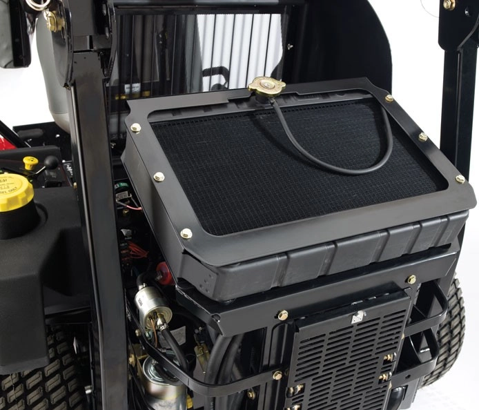 2 großzügig dimensionierte Lenkholme mit Panzerlenkung für den feinfühligen hydrostatischen Antrieb. Deluxe-Fahrersitz mit extra gepolsterter Sitzfläche und 3D-Isolatorbefestigung für optimale Federung. Aushubpedal für Mähwerk, beste Traktion auch in Hanglagen. TurfMaster Antriebsräder 23x12-12, schlauchlose halbpneumatische Laufräder 13x7-6. Von Außen abschmierbare Spindellager. Massive Mähwerksaufhängung mit integrierter Stoßdämpfung. Wahlweise mit 132 oder 152 cm TurboForce-Profi-Mähdeck mit Seitauswurf rechts oder 132 cm Heckauswurf, robuster Spindellagerung aus Gusseisen mit massivem Unterteil, 6mm starke Messer aus vergütetem Stahl. Patentierte einstellbare Ablenkbleche serienmäßig. Alle Modelle inklusive Z-Stand zur einfachen Reinigung und Wartung des Mähdecks.