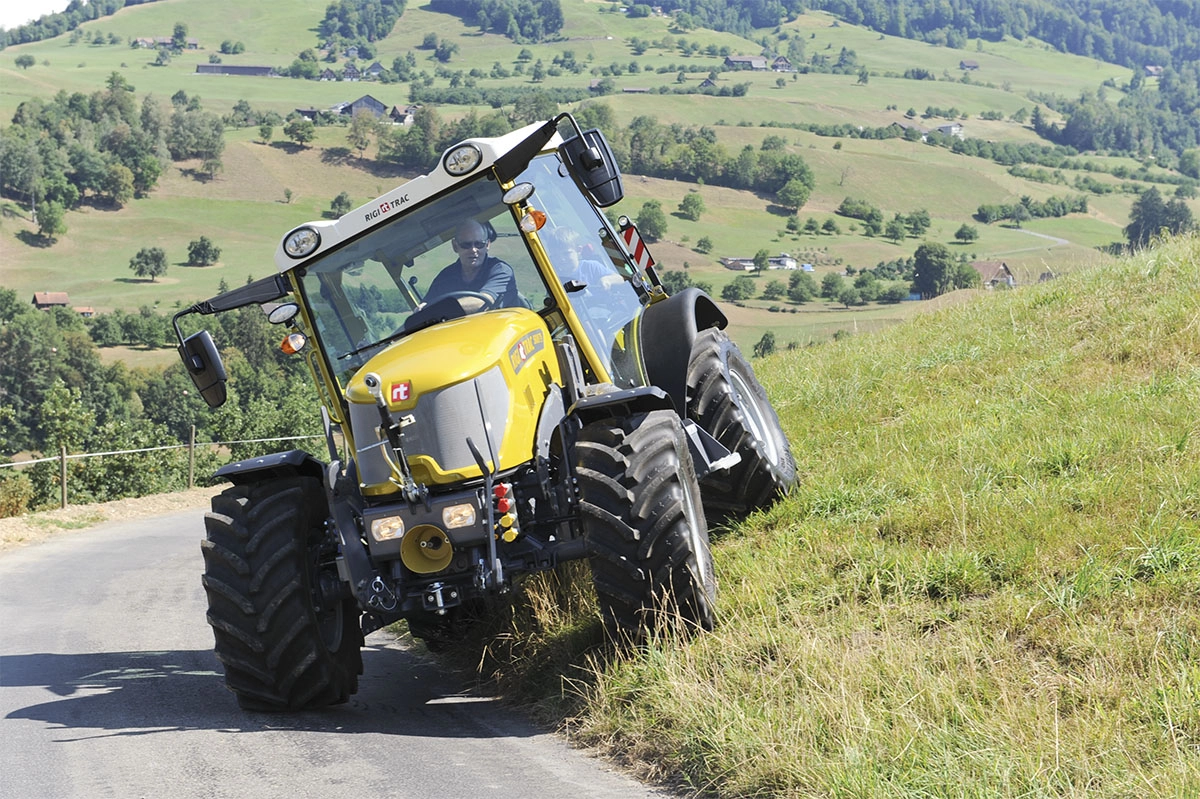 Leistungsstark, Innovativ und mit höchstem Komfort – so steht das Traktorenprogramm von Rigitrac für Sie parat. Wählen Sie aus 3 PS- und Chassisgrößen Ihr passendes Gefährt. Voll hydrostatisch (stufenlos) mit 2 Fahrstufen, Vorderrad-, Allrad- und Hundegang-Lenkung inklusive. Kraftvolle Hubwerke vorne und hinten, hochkomfortable Kabinenfederung und einzigartiger Chassisbaurahmen mit zentralem Drehgelenk. Nur etwas für echte Profis.